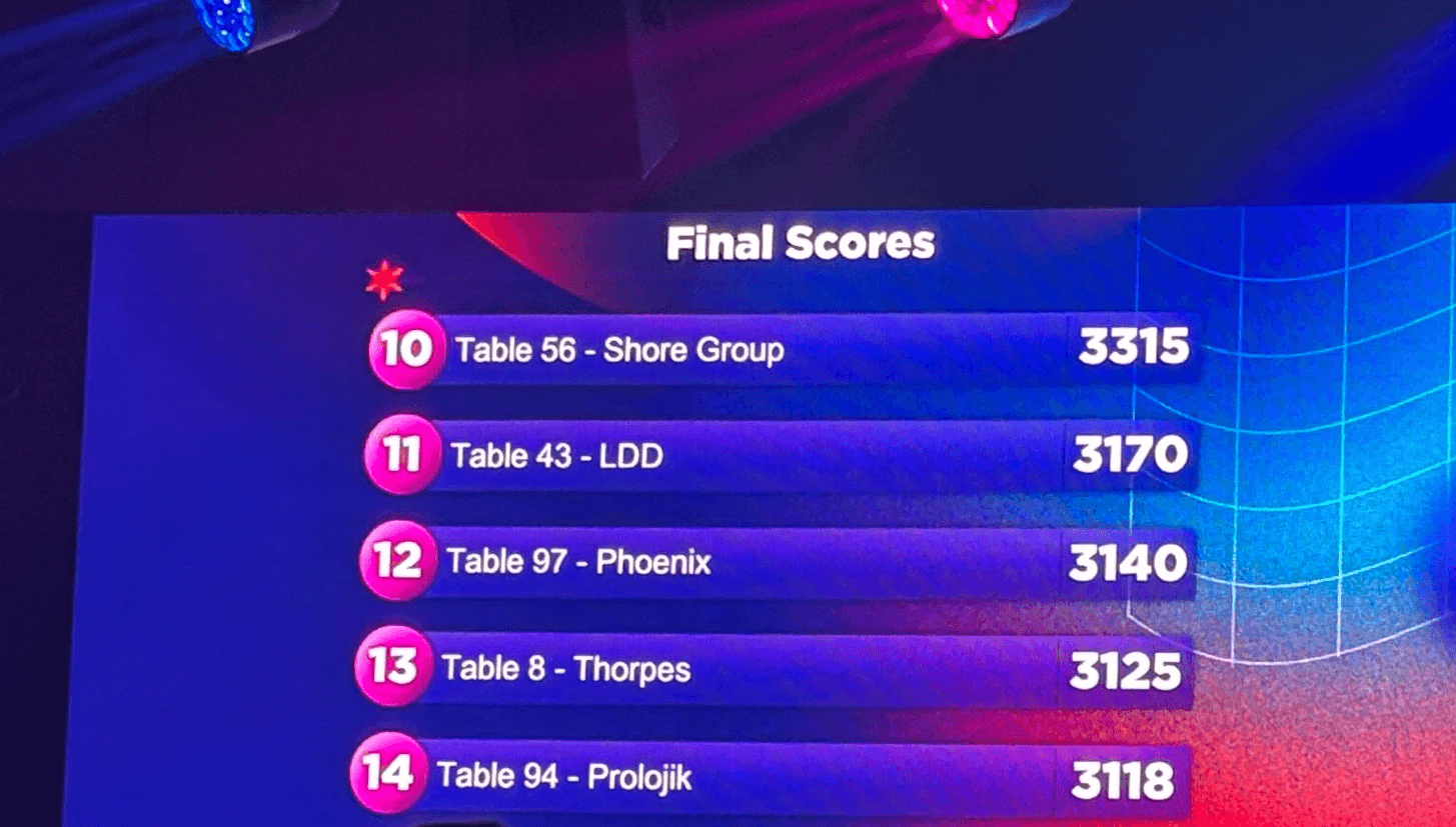 The Quiz was competitive, but thanks to a strong music round, The Shore Group finished 10th overall.